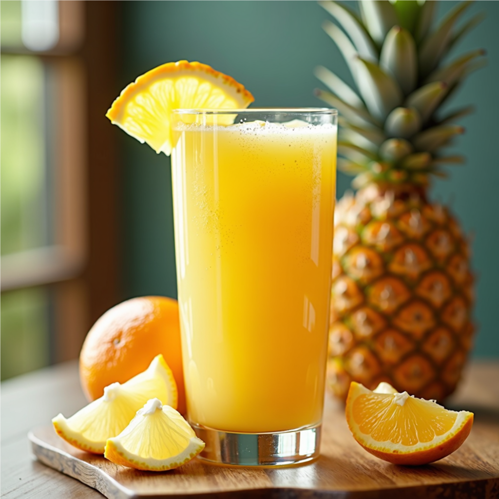 A tropical blend of pineapple, coconut milk, banana, and a splash of lime juice delivers a creamy yet refreshing taste. The coconut milk adds richness while pineapple provides a sweet tang.